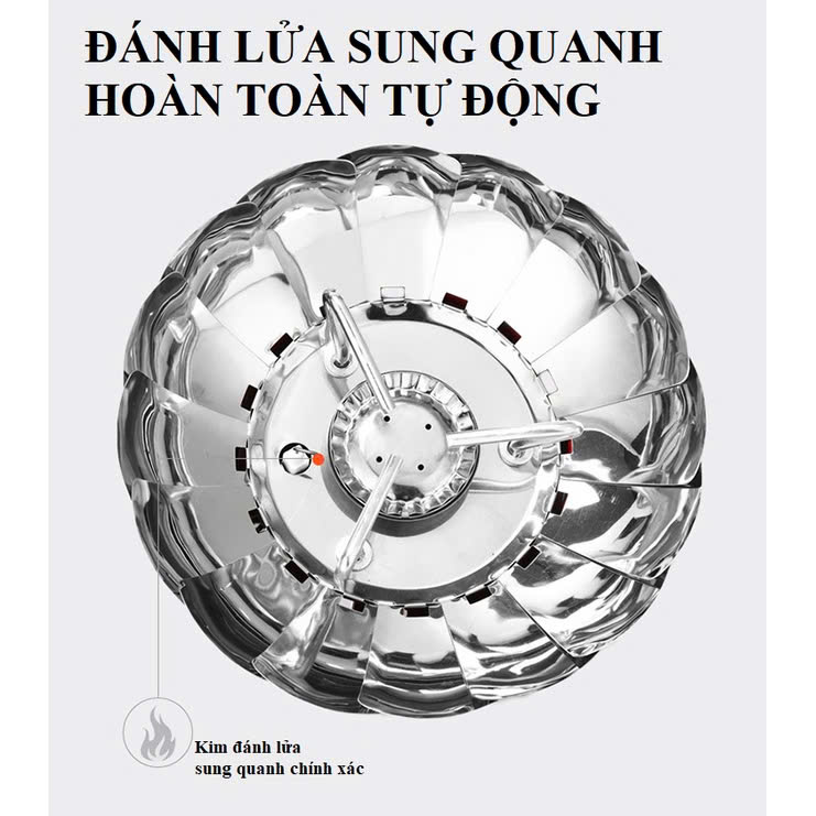 Bếp Gas Mini Du Lịch Xếp Gọn Có Dây Và Vòng Chắn Gió