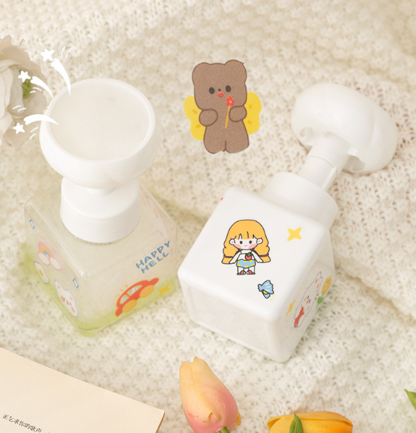 Bình Nhựa Đựng Xà Phòng Dạng Nhấn Tạo Bọt Hình Hoa Hoạt Hình 250ml