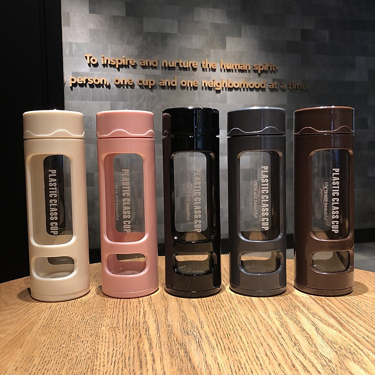 Bình Nước 2 Lớp Class Cup Lõi Thủy Tinh Nhựa PP Bên Ngoài Chống Rơi Vỡ Có Ngăn Lọc Trà