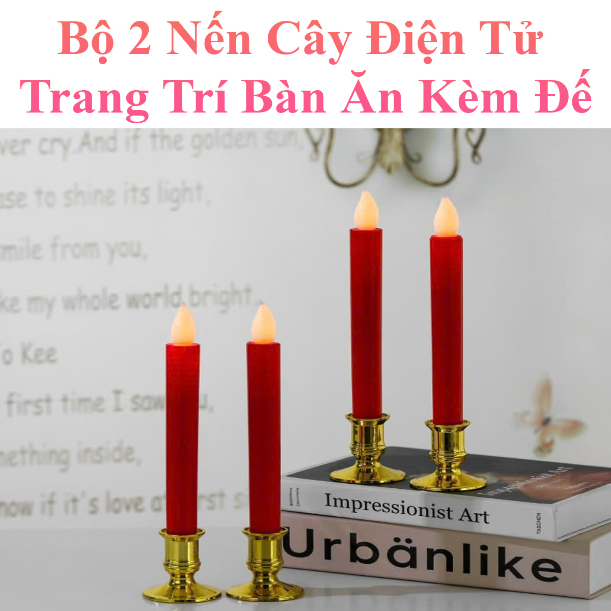 Bộ 2 Nến Cây Điện Tử Trang Trí Bàn Ăn Kèm Đế