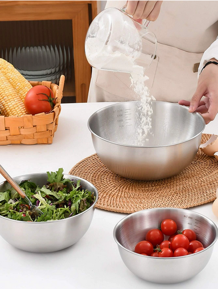 Bộ 3 bát âu trộn bột trộn salad inox 304 size lớn có vạch chia 17-19.5-24cm vô cùng tiện lợi cho gian bếp nhà bạn.