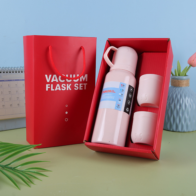 Bộ Bình Giữ Nhiệt Inox 304 Tặng Kèm 2 Cốc Nhiều Màu Dễ Thương Có Hộp Sang Trọng