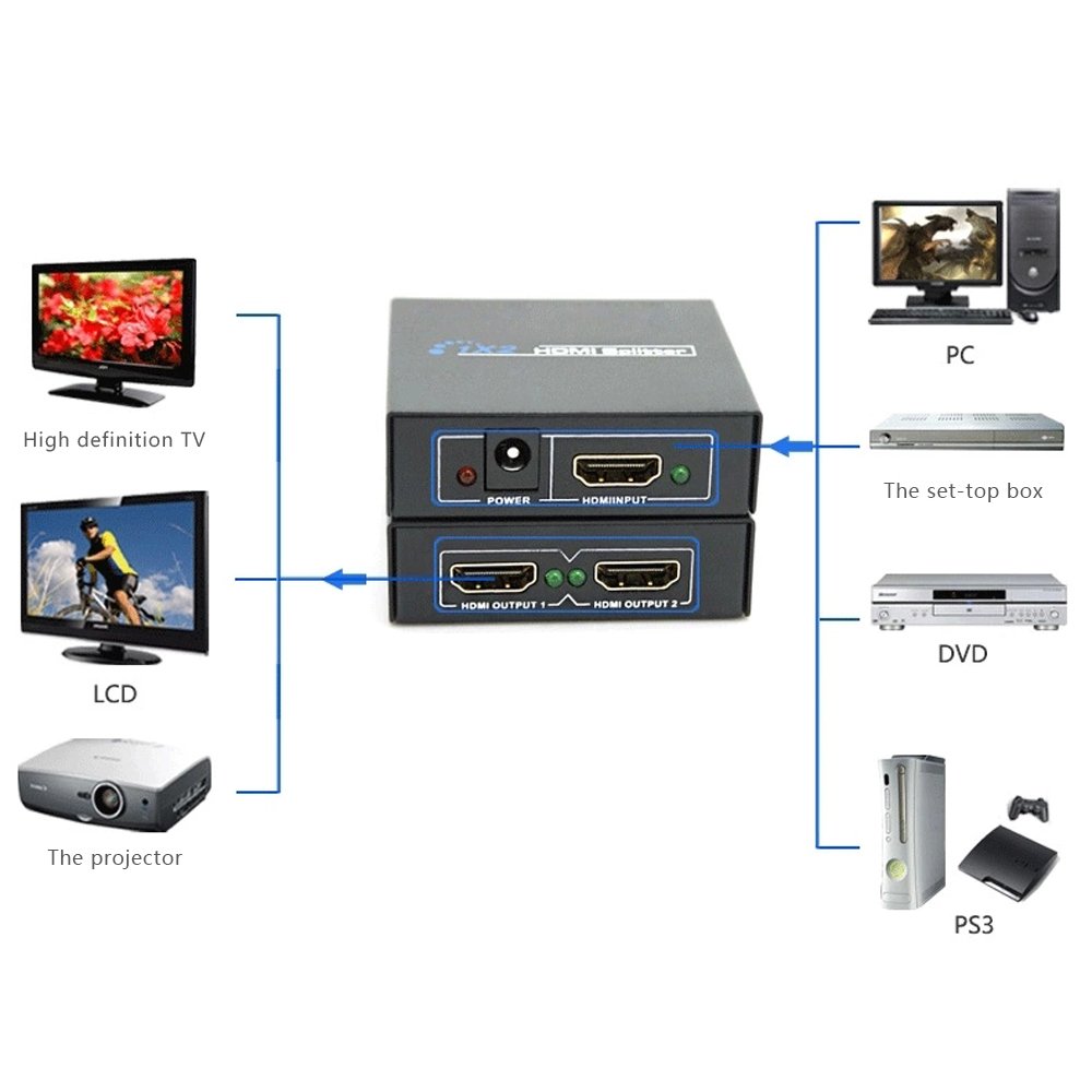 Bộ chia cổng HDMI 1 ra 2 Chuẩn 1.4 được sản xuất trên dây chuyền công nghệ hiện đại với khả năng hỗ trợ truyền tải tín hiệu kỹ thuật số từ 1 nguồn phát duy nhất ra 2 màn hình, máy chiếu với chuẩn HDMI 1.4 cho khả năng xuất tín hiệu đồng thời cùng 1 lúc mà không bị ảnh hưởng, delay,…với tín hiệu hình ảnh sắc nét