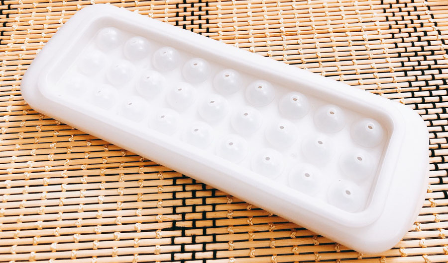 Một khay khuôn gồm nhiều lỗ hình tròn đều nhau, có thể làm trân châu, thạch rau câu, đá, …