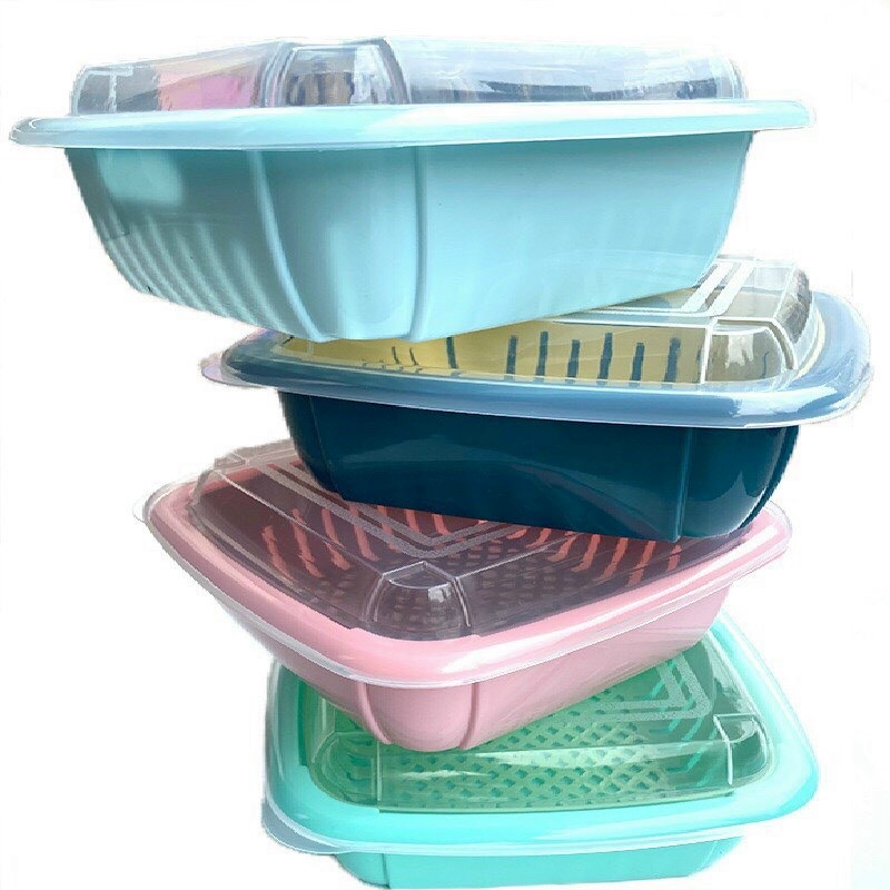 Bộ Rổ Nhựa Kèm Thau Có Nắp Đậy Tiện Lợi