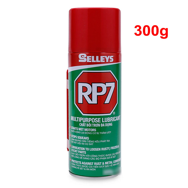 Dầu chống rỉ sét RP7 được cung cấp dưới dạng chai xịt đa dụng, có tác dụng chống rỉ (gỉ) sét, bôi trơn, bảo vệ kim loại chống ăn mòn,… Đây là một sản phẩm được tin dùng của Selleys (Úc), là một hỗn hợp gồm một loại dầu cao cấp dễ thấm nhờn, đươc chế tạo bằng công thức cải tiến và một hóa chất đậm đặc chống rỉ (gỉ) sét.