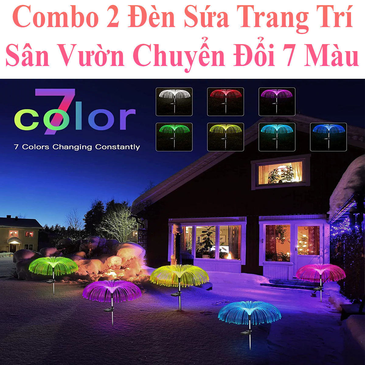 Combo 2 Đèn Sứa Trang Trí Sân Vườn Chuyển Đổi 7 Màu Dùng Năng Lượng Mặt Trời Chống Thấm Nước