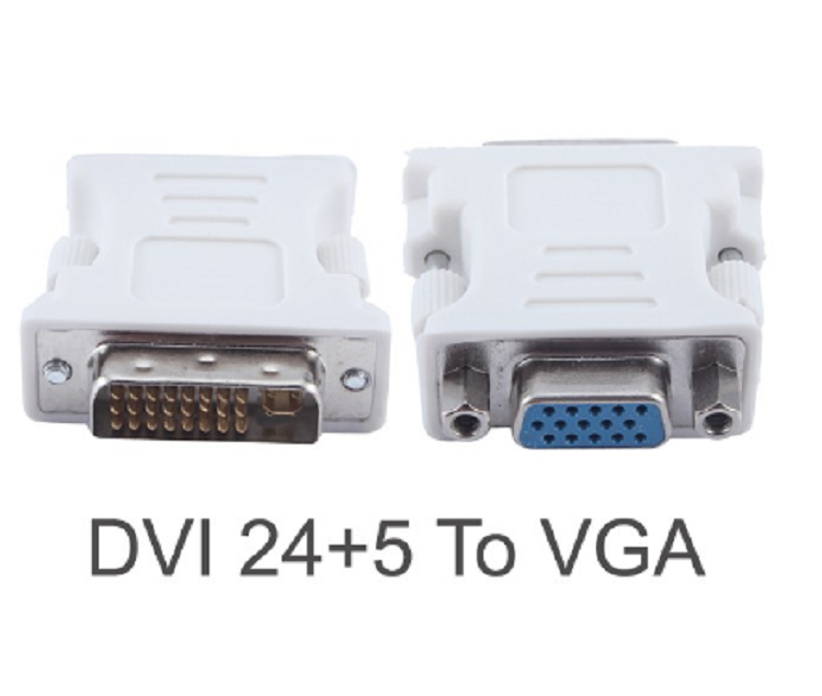 DVI Chuẩn tín hiệu DVI là cổng kết nối chúng ta thường thấy trên máy tính. Cổng DVI hay có trên mainboard máy tính mới hiện nay, card dòng card đồ hoạ, máy tính đồng bộ, server…DVI có 5 loại chuẩn khác nhau DVI-A, DVI-D Single Link, DVI-D Dual Link, DVI-I Single Link, DVI-I Dual Link. Để phân biệt các loại chuẩn này không phải việc dễ dàng, bạn có thể dễ nhầm lẫn. Chuẩn DVI-I 24+5 hầu hết chỉ thấy trên Card đồ hoạ (đời cũ), Mainboard máy tính hầu như ít gặp chuẩn này. Đây là tín hiệu DVI-I Dual Link bao gồm cả Digital và Analog (tín hiệu tương tự). Bạn đang dùng chiếc card đồ hoạ máy tính có cổng DVI 24+5 thì có thể dễ dàng chuyển đổi ra cổng VGA qua adapter thông thường.