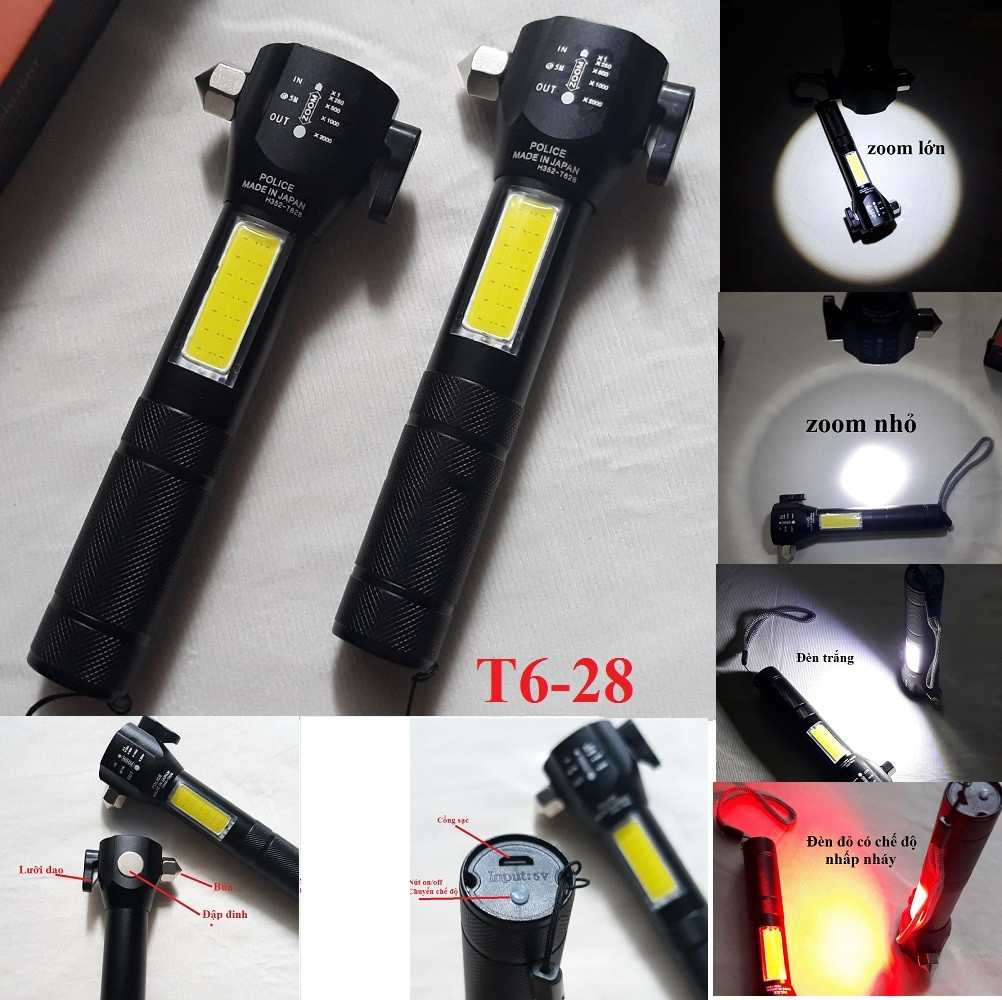 Đèn Pin Cứu Hộ Đa Năng Siêu SÁng T6-28 Có Dao Cắt