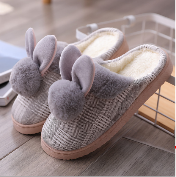 Dép Lông Mang Trong Nhà Caro Hình Thỏ Siêu Đáng Yêu