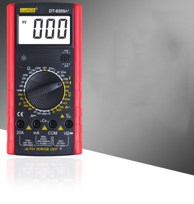 Đồng hồ đo vạn năng Digital DT9205A+ có khả năng đo các trị số: trở kháng (Ohm), dung kháng (F), cường độ dòng điện, hiệu điện thế, hệ số khếch đại transistor.