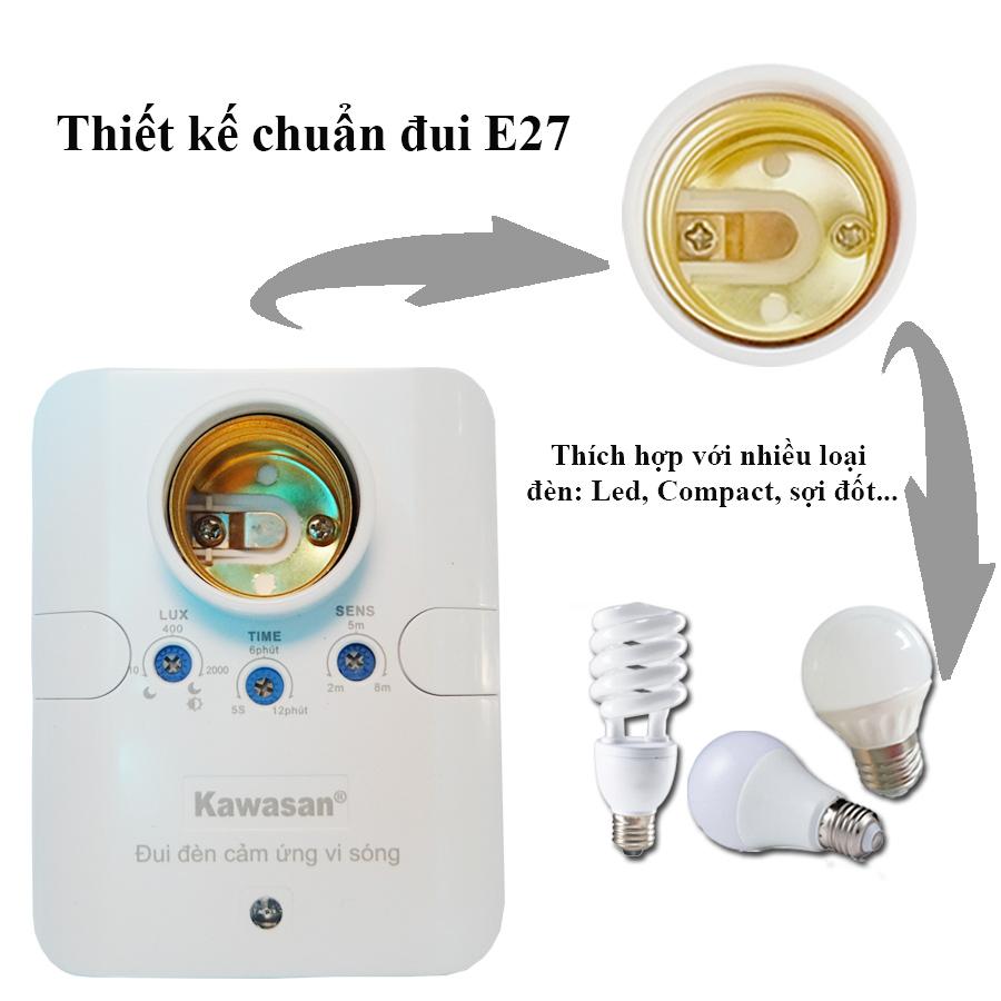 Đui Đèn Kawasan RS686C Cảm Ứng Vi Sóng Siêu Nhạy
