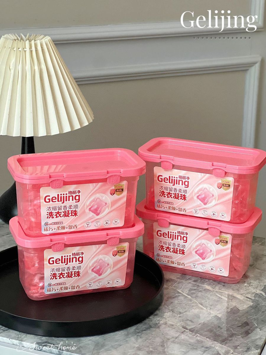 VIÊN GIẶT CÔ ĐẶC GELIJING 2 In 1 chiếc xuất từ hoa anh đào Nhật Bản và Carageenan giúp làm sạch và lưu hương cho quần áo gấp 8 lần bột giặt thường.