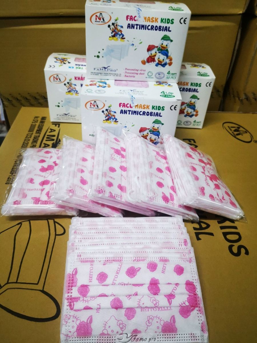 Hộp 50 Khẩu Trang Trẻ Em Kháng Khuẩn FAMAPRO 4 Lớp