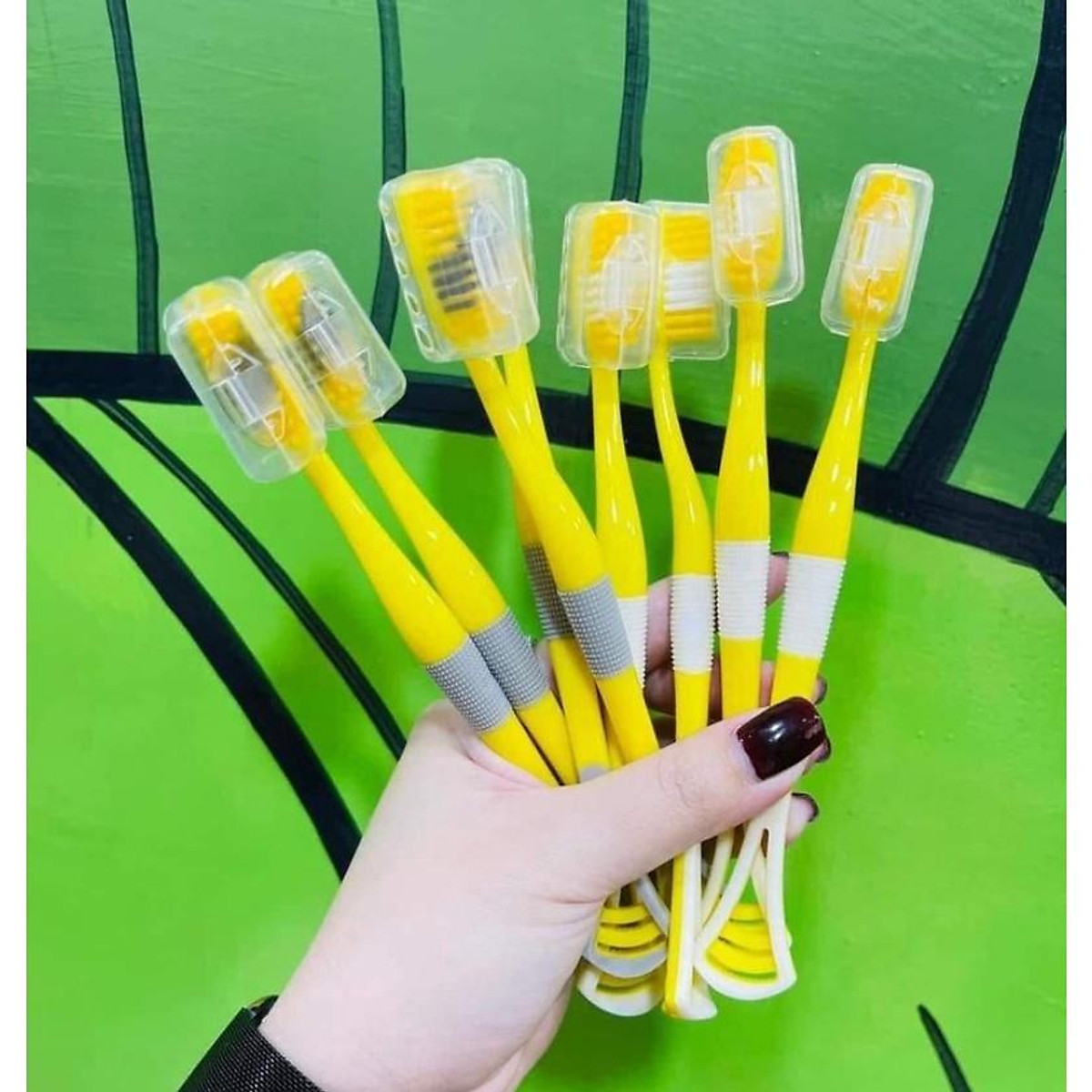 Hộp 8 Bàn Chải Đánh Răng Hình Vịt Vàng Có Đầu Cạo Lưỡi