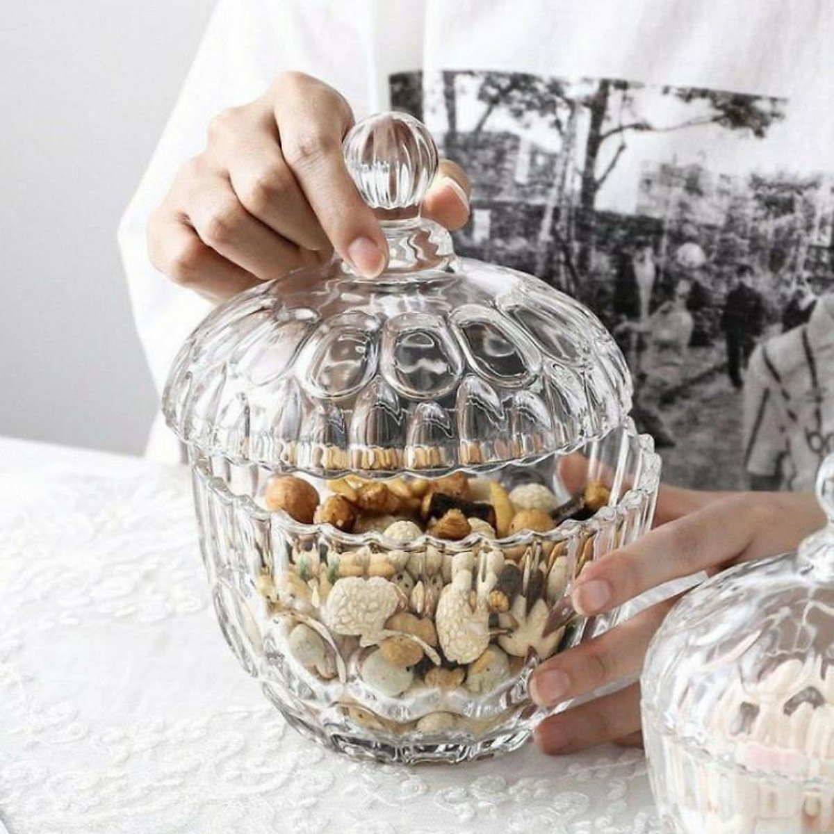 Hủ Thuỷ Tinh Pha Lê Đựng Hạt Dưa, Mứt Tết Có Nắp Đậy 13cm