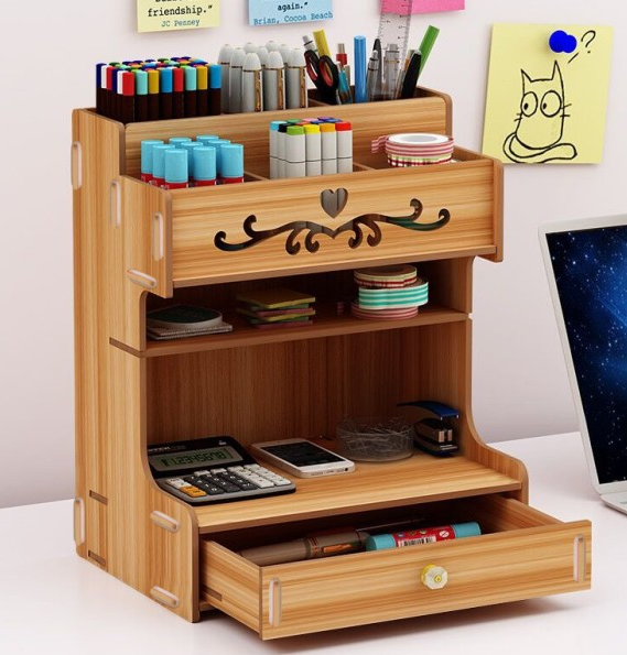 Kệ Gỗ Đựng Bút 6 Ngăn Có Ngăn Kéo Tiện Lợi