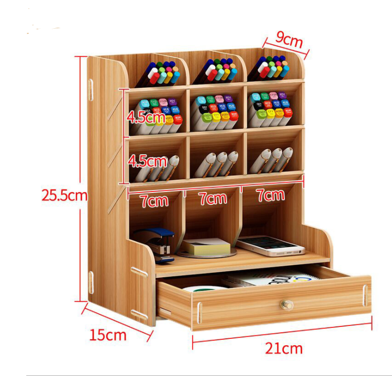 Kệ Gỗ Đựng Bút 9 Ngăn Có Ngăn Kéo Tiện Lợi