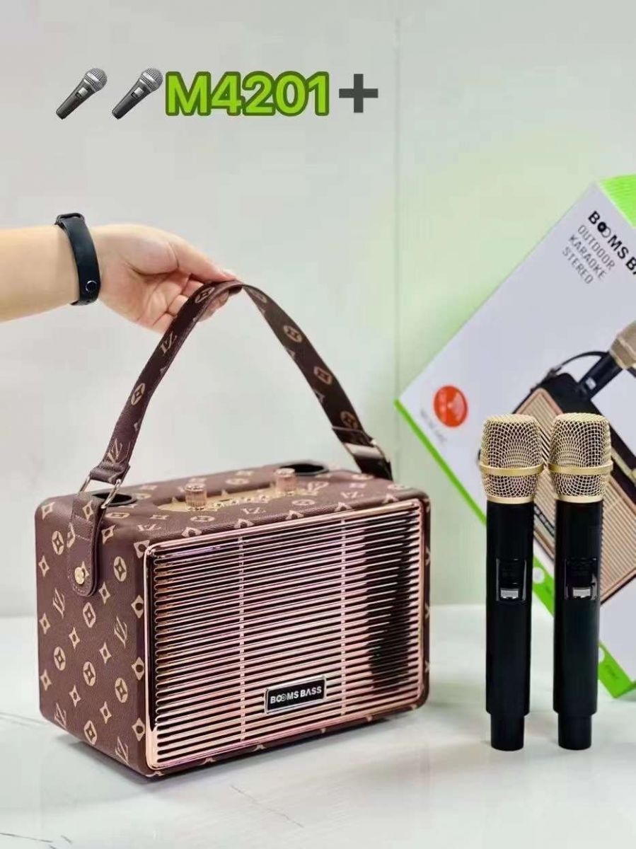 Loa Karaoke Bluetooth Booms Bass M4201+ Bass Mạnh Kèm 2 Micro Âm Thanh Lớn Hát Hay