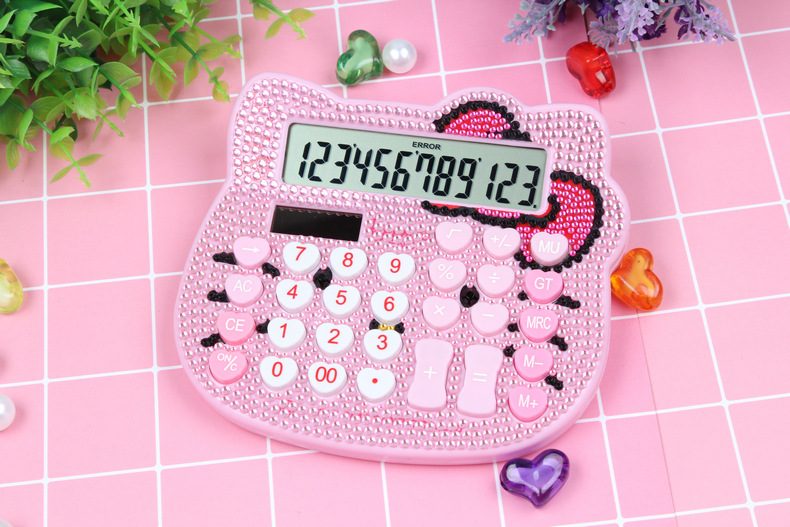 Máy tính hình mèo đính hạt lấp lánh. Chất liệu: nhựa cao cấp.