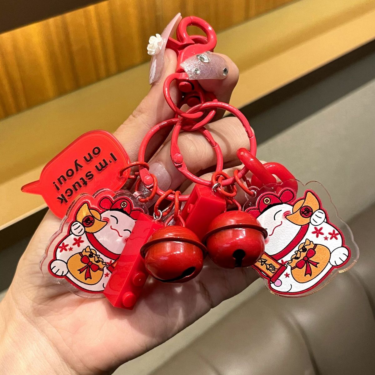 Móc Khoá Hình Mèo Thần Tài Kèm Chuông Và Phụ Kiện