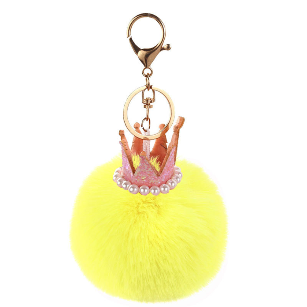 Móc Khóa Quả Cầu Sợi Bông Có Vương Miện Nhiều Màu Sắc Thời Trang