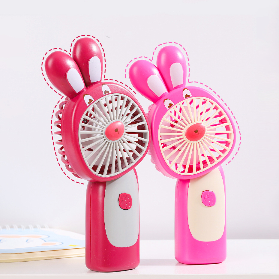 Quạt mini cầm tay, quạt cầm tay mini để bàn nhỏ gọn, tiện lợi hình gấu dâu và thỏ hồng xinh xắn