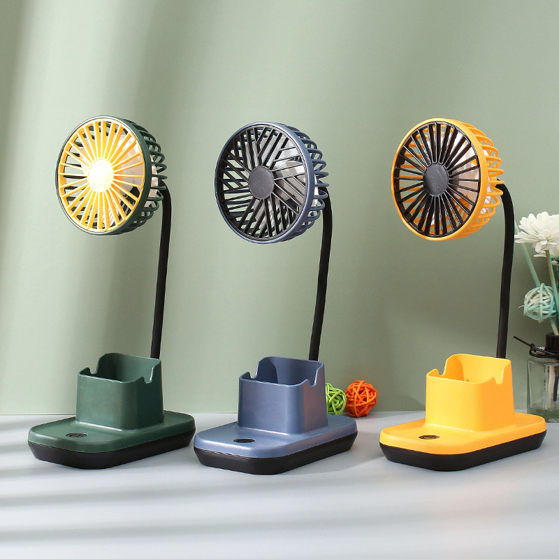 Quạt Tích Điện Mini Có Hộp Đựng Bút Và Giá Đỡ Điện Thoại