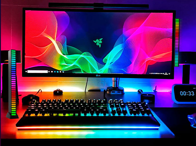 Thanh đèn led RGB cảm ứng âm thanh được trang bị 32 mô-đun đèn led nhiều màu sắc, micrô có độ nhạy cao và bộ xử lý ARM 32-bit với tần số chính là 72M. Nó có 8 chế độ hiển thị, 18 chế độ màu, 4 mức độ sáng và 5 mức tốc độ.