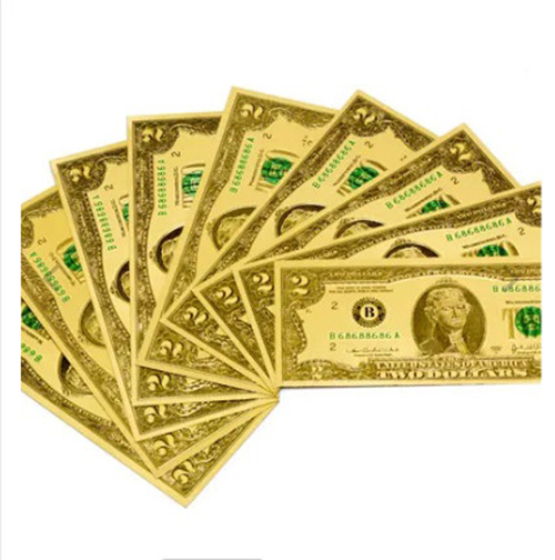 Tiền 2 Usd Plastic Mạ Vàng 1 Mặt Độc Đáo Sáng Tạo 15.5×6.5Cm