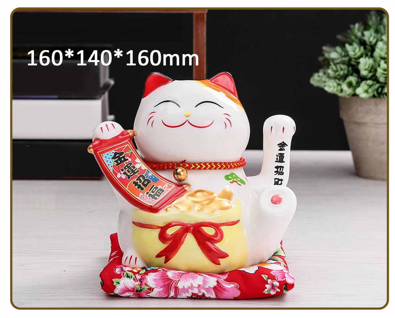Tượng Mèo Thần Tài Gốm Men Vẫy Tay 16cm Phát Tài, Phát Lộc Kèm Đệm Đỏ
